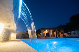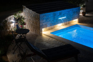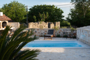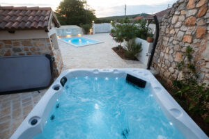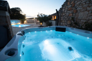 Naši privatni jacuzzi i grijani bazen tijekom cijele godine su mjesto opuštanja i osvježenja. Okruženi rustikalnim zidom, imate potpunu privatnost dok uživate u opuštajućoj hidromasaži i kupanju.